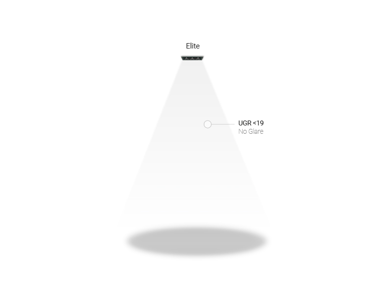 Dank des niedrigen UGR-Index <19, wird die Blendwirkung reduziert und eine exklusive Beleuchtungsqualität und absoluter Sehkomfort erreicht.