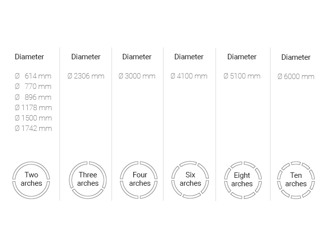 Je nach Durchmesser bestehen die Loop-Leuchten aus einer unterschiedlichen Anzahl von Bögen, von zwei bis zu zehn.