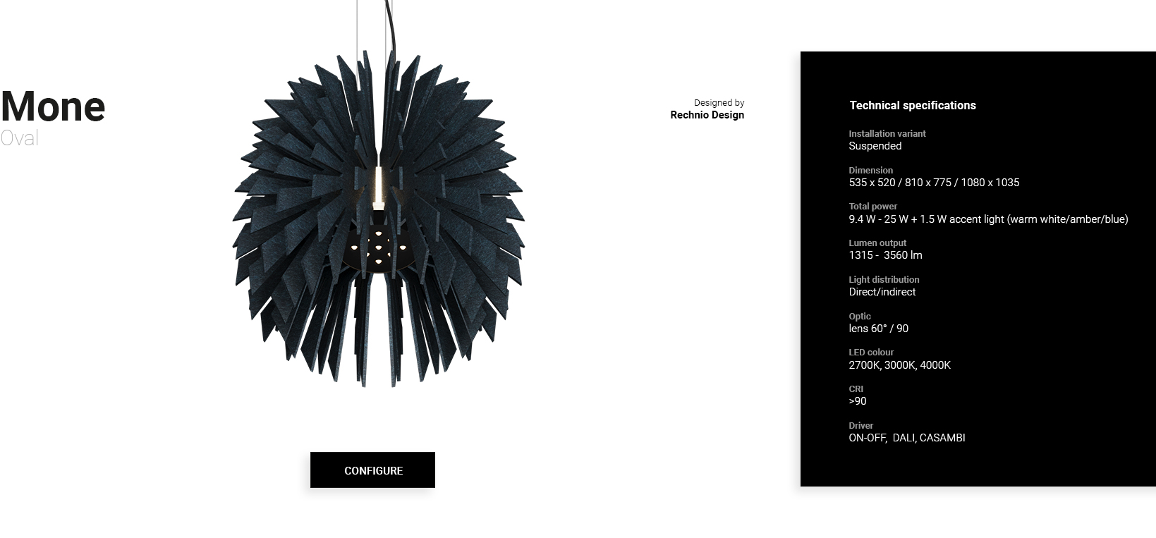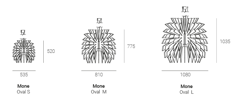 Die Mone Oval ist eine elegant verfeinerte Version der Kollektion mit einer glatten, länglichen Form, die die Symmetrie eines Kreises mit dem dynamischen Fluss einer Ellipse verbindet. Das ovale Design verbessert nicht nur die ästhetische Vielseitigkeit der Lampe, sondern optimiert auch ihre akustische Leistung, sodass sich der Schall nahtlos entlang ihrer Konturen ausbreiten kann.