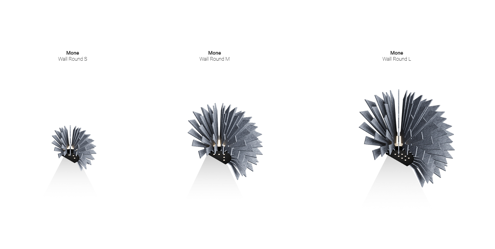 FarbenDie Mone Wall ist eine dezente und zugleich eindrucksvolle Akustikleuchte, die innovative Schallabsorption harmonisch mit durchdachter Beleuchtung verbindet. Ihr charakteristischer gerippter Schirm, ein visuelles Markenzeichen der Mone-Familie, verbirgt eine punktuelle Lichtquelle, die ihren Strahl präzise auf den gewählten Bereich lenkt und so eine intime Atmosphäre schafft. Die sanfte Umgebungsbeleuchtung, in drei Farben erhältlich, hebt subtil die tiefe Filzstruktur hervor und zaubert ein faszinierendes Spiel von Licht und Schatten an die Wand. Erhältlich in vier faszinierenden Formen, ist die Mone Wandleuchte eine vielseitige Lösung, die sich nahtlos in die Ästhetik und Funktionalität offener Räume einfügt, wo Licht und Akustik Hand in Hand gehen, und jedem Interieur modernen Charakter und Ruhe verleiht. Sie ist nicht nur eine Leuchte; sie ist ein wandmontierter Begleiter, der die Stimmung mitgestaltet und den akustischen Komfort verbessert, indem sie einen subtilen, aber wirkungsvollen Akzent in Ihrer Umgebung setzt.