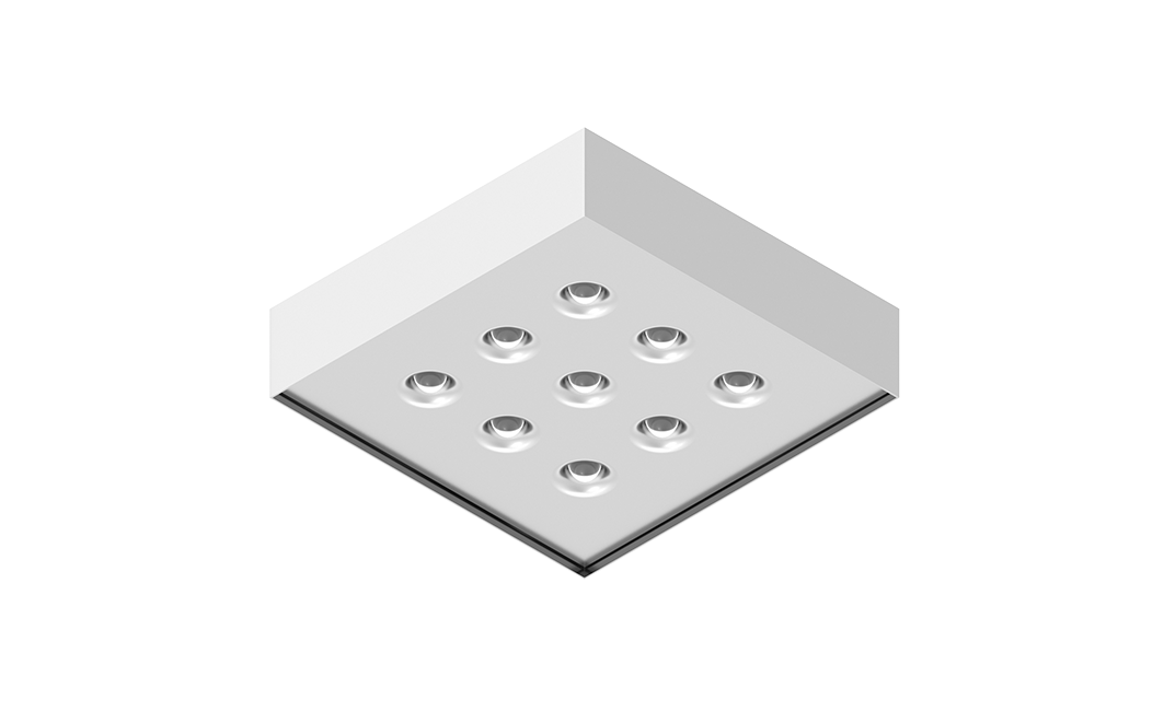 Die Leuchte wurde mit der innovativen Multicone-Technologie entworfen, bei der die zurückgesetzte Linse und LED Quelle in einer mechanisch geformten Front verankert ist. Dank dieses Verfahrens erzielt man die Wirkung einer natürlichen und für das Auge gesunden Lichtquelle.