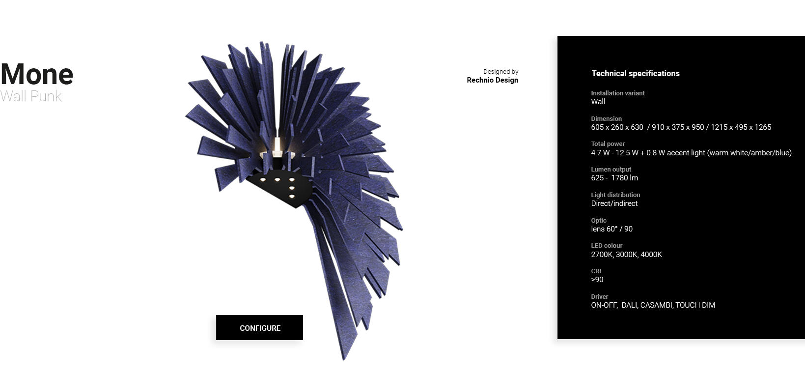 The Mone Punk Wall is a wall-mounted declaration of avant-garde, boldly breaking with convention. Its irregularly arranged felt panels, much like the spikes of a punk hairstyle, create a dynamic, almost sculptural form that becomes an undeniable focal point on the wall. It’s more than just lighting; it’s a true celebration of individuality and nonconformity, fiercely manifesting the interior's character, imbuing it with rebellious elegance and artistic flair. This wall lamp is for those who dare to defy the ordinary and want their space to tell its own unique story.