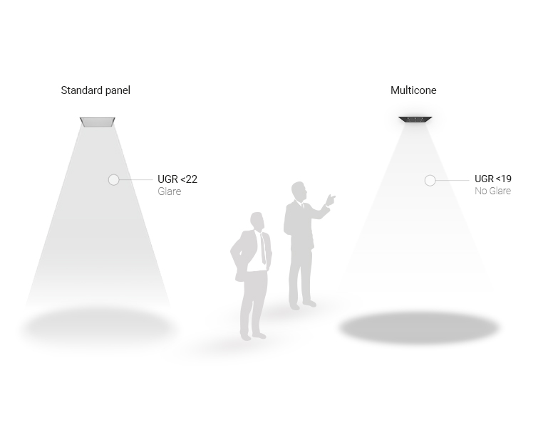 With low UGR (60° dispersion angle UGR < 19), glare is reduced and an exclusive lighting quality and total visual comfort are achieved.