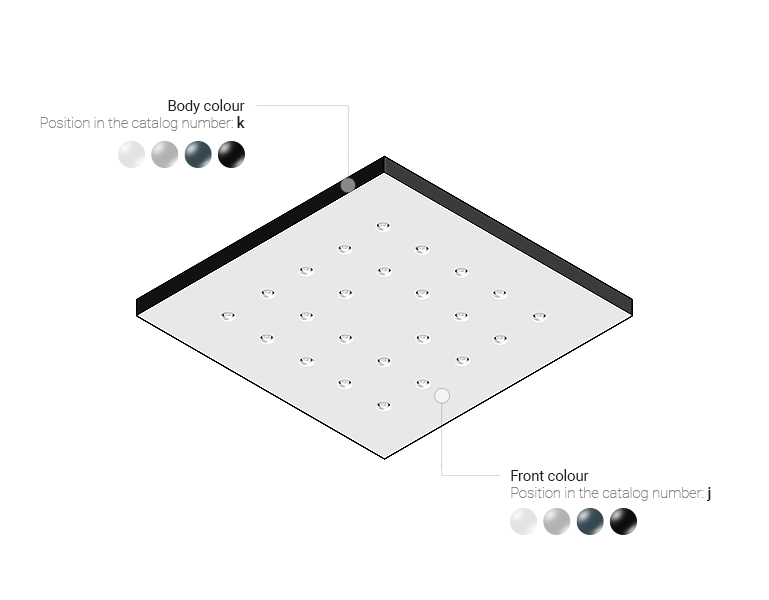 The Multicone fixtures are made of steel and are available in four colors: white, gray, graphite and black. The casing and front may have the same or different colours.
