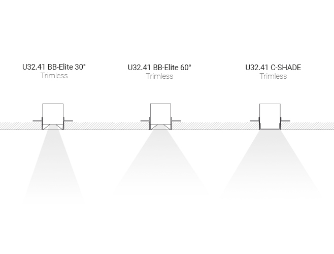 The U32.41 profiles are available as built-in frameless, i.e. Trimless with C-Shade diffuser or BB-Elite optics.