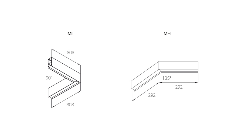 Connector designations refer to the shape of the letters of the alphabet or their arrangement against a surface, e.g. ML refers to the letter L. The MH connector refers to the horizontal alignment of two segments joined at 135 degrees.