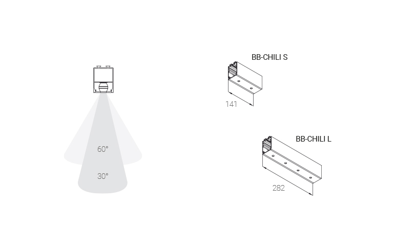 The BB-Chili is based on Bartenbach technology with LFO optics and with a 30 and 60 degree beam spread angle.