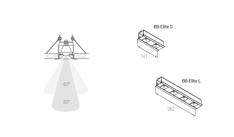 The BB-Elite modules are based on LFO technology with 30 and 60 degree beam spread angle and with an anti-glare raster.