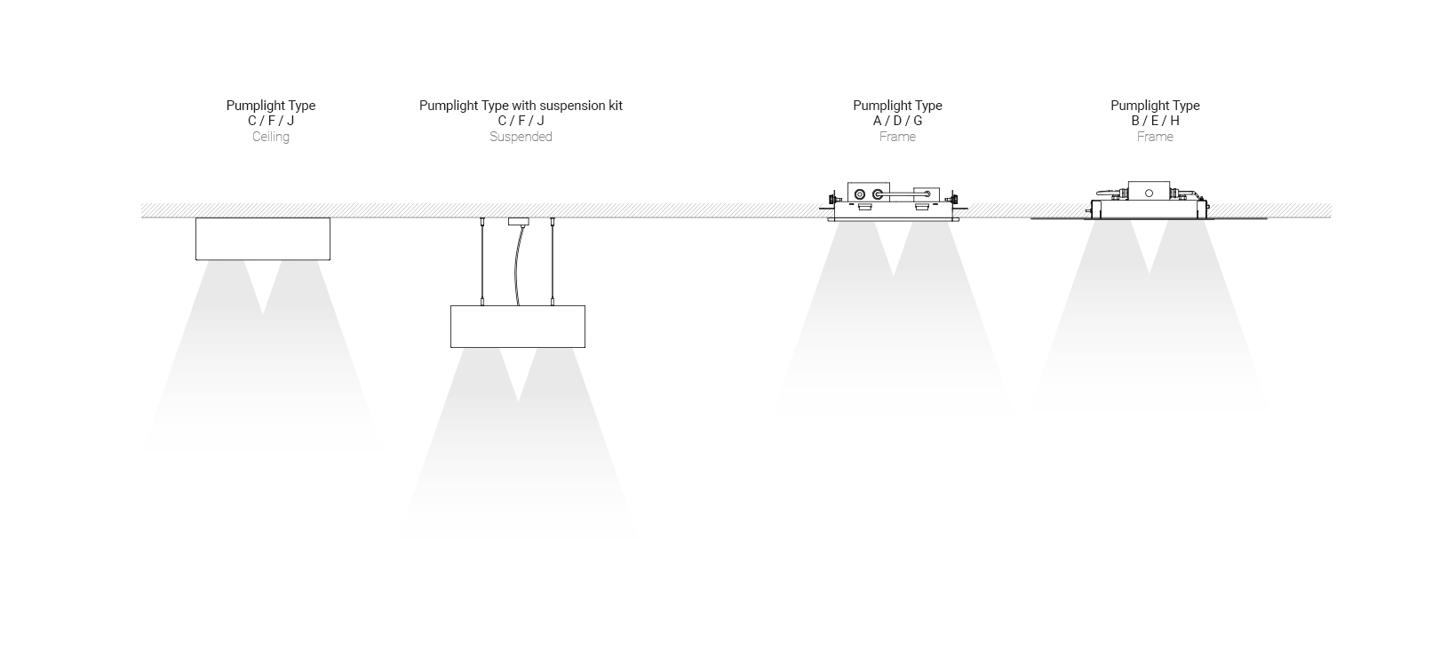 Pumplight fixtures, made of steel, are available in four colours: white, gray, graphite and black.