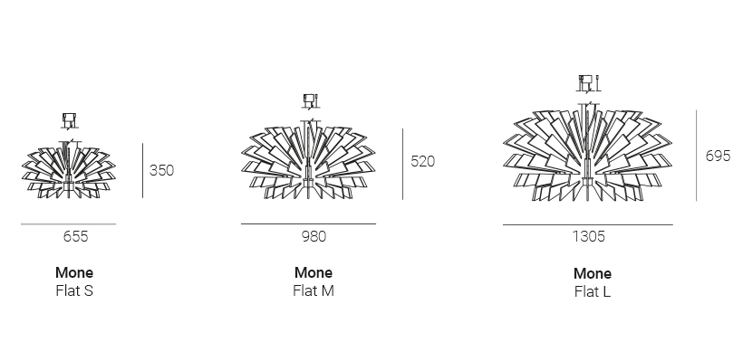 Mone Flat to największa wersja w kolekcji, zaprojektowana z niskim profilem i szeroką, rozłożystą strukturą, która przypomina elegancki, nowoczesny naleśnik. Jej minimalistyczna i stonowana forma podkreśla linie poziome, tworząc poczucie otwartości i równowagi w każdej przestrzeni.