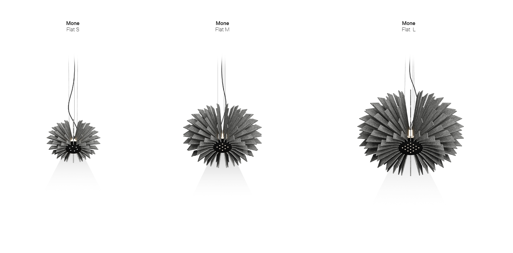 KoloryMone to wysokiej jakości oprawa akustyczna, która łączy w sobie wyjątkową absorpcję dźwięku z zaawansowanymi możliwościami oświetleniowymi. Jej charakterystyczny, żebrowany abażur kryje źródło światła „multicone”, zapewniając skupione oświetlenie punktowe. Design dopełnia nastrojowe ambientowe oświetlenie w trzech wariantach kolorystycznych, delikatnie podkreślając warstwową strukturę filcu, co dodaje jej wizualnej elegancji. Dostępna w czterech wariantach, Mone oferuje możliwość personalizacji w szerokiej gamie kolorów i kształtów, aby pasować do różnorodnych otwartych przestrzeni.