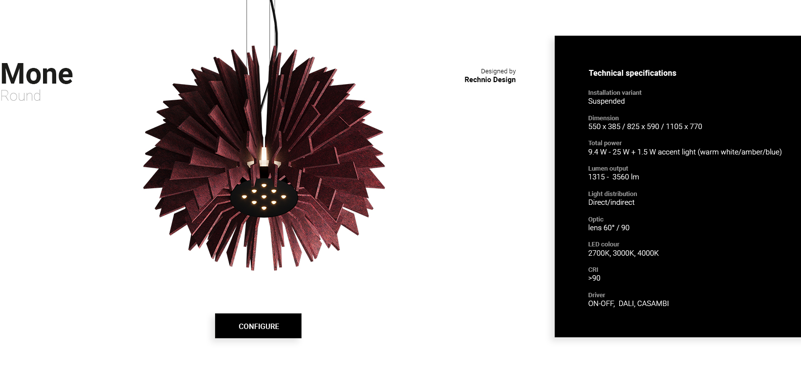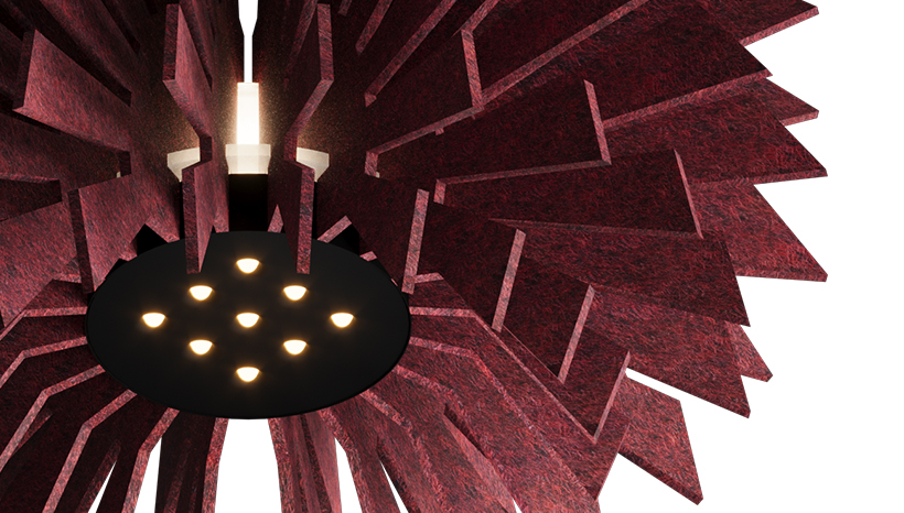 KoloryMone to wysokiej jakości oprawa akustyczna, która łączy w sobie wyjątkową absorpcję dźwięku z zaawansowanymi możliwościami oświetleniowymi. Jej charakterystyczny, żebrowany abażur kryje źródło światła „multicone”, zapewniając skupione oświetlenie punktowe. Design dopełnia nastrojowe ambientowe oświetlenie w trzech wariantach kolorystycznych, delikatnie podkreślając warstwową strukturę filcu, co dodaje jej wizualnej elegancji. Dostępna w czterech wariantach, Mone oferuje możliwość personalizacji w szerokiej gamie kolorów i kształtów, aby pasować do różnorodnych otwartych przestrzeni.