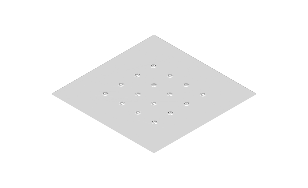 Okrągłe soczewki ułożono symetrycznie w przecinające się rzędy.