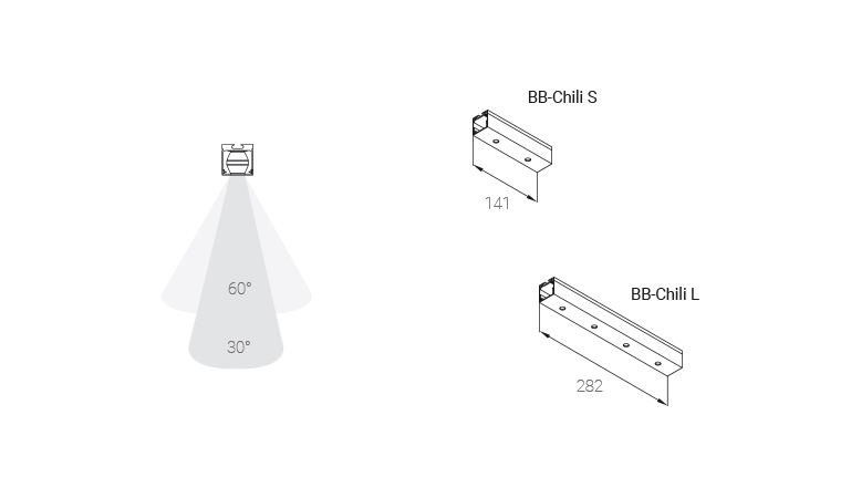 BB-Chili oparto na technologii Bartenbach z optyką LFO z kątem rozsyłu 30 i 60 stopni.