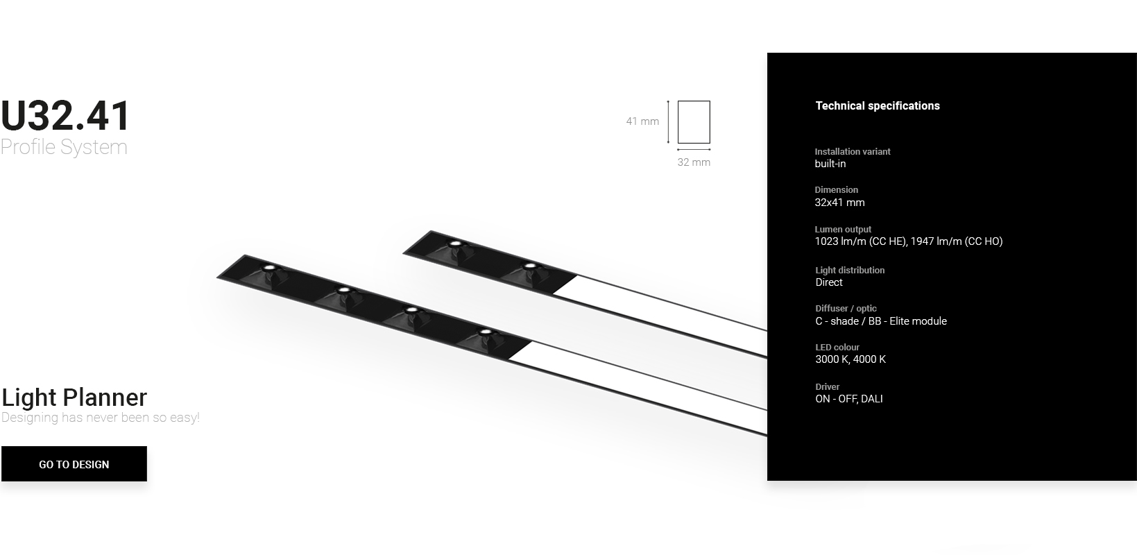 Profile U32.41 występują w wersji wbudowanej bezramkowej czyli Trimless