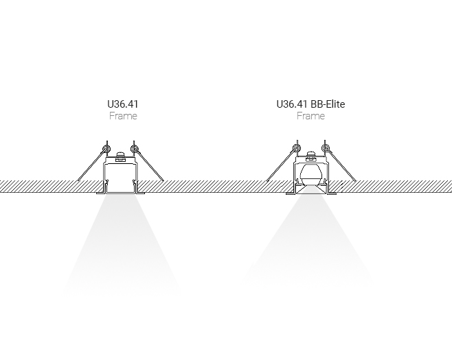 Profile U36.41 występują w wersji wbudowanej z ramką z dyfuzorem C-Shade, modułami BB-Elite