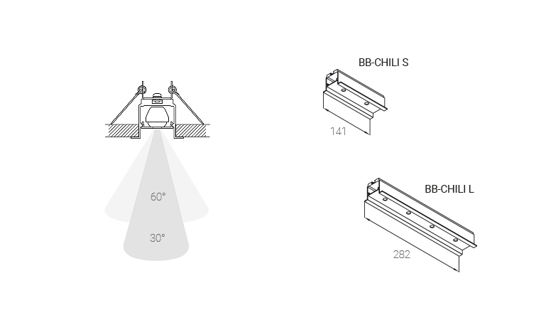 The BB-Chili is based on Bartenbach technology with LFO optics and with a 30 and 60 degree beam spread angle.
