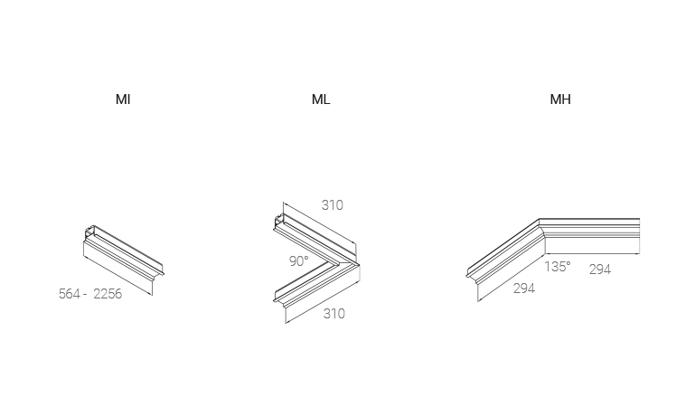 Connector designations refer to the shape of the letters of the alphabet or their arrangement against a surface, e.g. ML refers to the letter L. The MH connector refers to the horizontal alignment of two segments joined at 135 degrees.